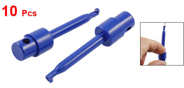 Product Name Test Hook Clip Each Size 57 x 12mm/2.2'' x 0.5''(L*D) End Hole Dia. 4mm/0.16'' Hook Size 4.5 x 2.5mm/0.18'' x 1''(L*W) Color Royal Blue Material Metal, Plastic Total Weight 20g Package 10 x Test Hook Clips - Reviews