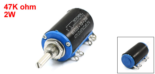 Product Name Wire Wound Potentiometer Model WXD3-13-2W Type Multi Turn Resistance Value 47K ohm Tolerance 5% Rating Power 2W Technology Wire Wound Terminals 3 Solder Lugs Body Size 36 x 21mm / 1.4" x 0.8"(H*D) Screw Thread Dia. 8mm / 0.31" Shaft Diameter 4mm / 0.16" Shaft Length 12mm / 0.47" Total Length 58mm / 2.3" Main Color Black, Blue Weight 25g Package Content 1 x Wire Wound Potentiometer - Reviews