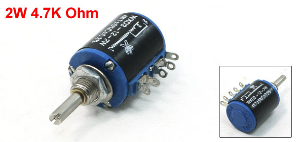 Product Name Wire Wound Potentiometer Model WXD3-13-2W Type Multiturn Technology Wire Wound Terminal Number 5 Rated Power 2 W Resistance Value 4.7K Ω Tolerance 5% Body Size 27 x 23mm / 1.1" x 0.9"(L * D) Screw Thread Dia. 8mm / 0.315" Shaft Diameter 4mm / 0.16" Total Length 50mm/ 2" Color Black, Blue, Silver Tone Weight 19g Package Content 1 x Wire Wound Potentiometer - Reviews