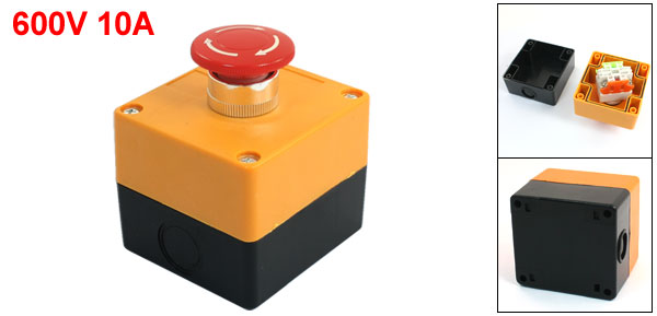 Mushroom Head Latching DPDT 600V 10A Push Button Switch w Control Box