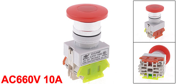Mushroom Shape Red Head AC660V 10A Emergency Stop Push Button Switch