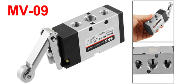 Product Name Mechanical Valve Model MV-09 Actuator Type Roller Type Fluid Air Position and Way No. 2 Position 5 Way Thread Diameter Air Inlet= Air Outlet= 12.7mm