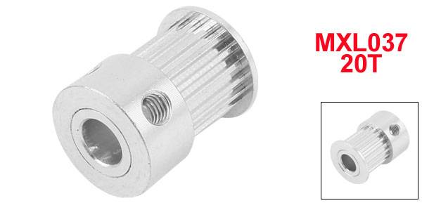 Product Name Timing Pulley Fit Timing Belt Model MXL037 Number of Tooth 20T Pitch 2.032mm/ 0.08" Bore Diameter 6mm/0.24" Flange 2 Sides Fit Belt Width 11mm/ 0.43" Overall Size 15 x 20mm/ 0.59" x 0.8"(D*H) Material Aluminum Alloy Color Silver Tone Weight 7g Package Content 1 x Timing Pulley - Reviews