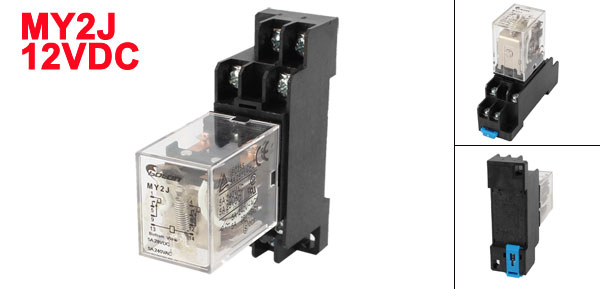 Product Name Relay with Socket Relay Model No. MY2J Coil Voltage 12VDC Contact Capacity 5A, 240VAC/28VDC Number of Pins 8 Overall Size(Approx.) 70 x 22 x 65mm/2.8" x 0.9" x 2.56"(L*W*H) Material(External) Plastic Color Clear, Black Weight 70g Package Content 1 x Relay with Socket - Reviews