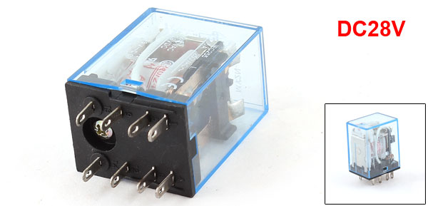 DetailsMY2N-J DC 28V Coil Red LED Power Relay 8 Pins DPDT 2NO 2NC  Product Name Electromagnetic Relay Model MY2N-J Type DPDT Coil Voltage DC28V Contact Capacity 5A 240VAC, 5A 28VDC Pin Quantities 8 Pin Size 6 x 2.5mm/0.24" x 0.1"(L*W) Overall Size (Approx.) 42 x 27 x 21mm/1.65" x 1.1" x 0.83"(L*W*H) Shell Material Plastic Light Color Red Main Color Clear Blue Weight 29g Package Content 1 x Electromagnetic Relay