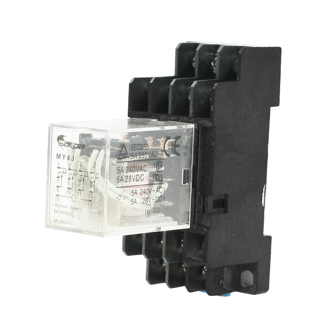 MY4J AC110V Coil 5A 240V AC 28V DC 35mm DIN Rail Power Relay 14 Pin w Socket
