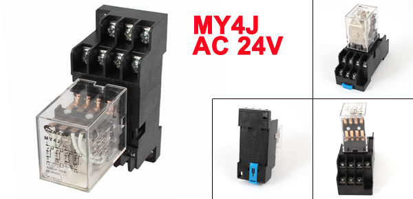 Product Name Electromagnetic Relay Model No. MY4J Coil Voltage AC 24V Contact Capacity 5A 240VAC /28VDC Type 4PDT Number of Terminals 14 Mount Rail Type 35mm DIN Rail Fixing Mount Hole Size 6 x 4mm/0.24" x 0.16"(L*W) Total Size (Approx.) 68 x 29 x 65mm/2.7" x 1.1" x 2.6"(L*W*H) Shell Material Plastic Main Color Black, Clear Blue Net Weight 76g Package Content 1 x Electromagnetic Relay - Reviews