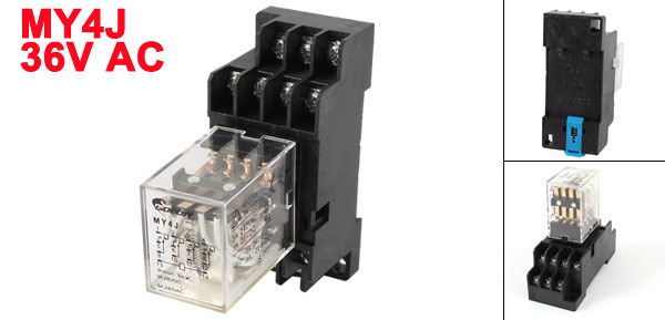 Product Name Power Relay + Socket Model No. MY4J Coil Voltage 36V AC Contact Capacity 3A, 240VAC