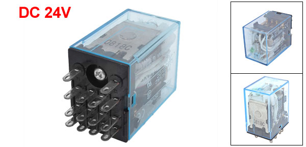 Product Name Electromagnetic Relay Model No. MY4N-J Coil Voltage DC 24V Contact Capacity 5A 250VAC. Type DPDT Pin Quantities 14 Pin Size 6 x 2.5cm / 0.24" x 0.1" (L*W) Body Size (Approx.) 3.5 x 2.6 x 2cm/1.4" x 1" x 0.9"(L*W*H) Shell Material Plastic Main Color Clear Blue, Black Net Weight 32g Package Content 1 x Electromagnetic Relay - Reviews