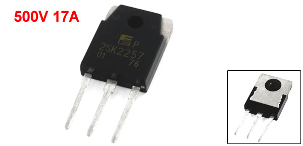 Product Name Silicon Transistor Model No. 2SK2257 Mounted Type Through Hole Continuous Drain Current 17A Darin Source Voltage 500V Mounting Hole Diameter 3.6mm / 0.14" Pin Size 14 x 5mm / 0.56" x 0.20" ( L* Pitch) Total Size 35 x 14 x 4mm / 1.4" x 0.6" x 0.16" (L*W*H) Main Material Silicon Main Color Black, Silver Tone Weight 4g Package 1 x Silicon Transistor - Reviews