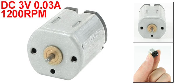 Product Name DC Motor Model No. N20 Rated Voltage DC 3V Rated Current 0.03A Rated Speed 1200RPM Body Size 12 x 10 x 16mm / 0.5" x 0.4" x 0.6"(L*W*T) Shaft Size 1 x 2mm/ 0.04" x 0.08"(D*L) Main Color Silver Tone Material Metal Net Weight 5g Package 1 x DC Motor - Reviews
