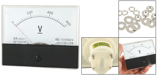DC Voltage Panel Meter Model No. 44C2-V Scale Range DC 0~600V Accuracy Class 1.5 Back Screw Diameter 4mm/ 0.16" Panel Size 9.7 x 7.9 x 1.2cm/ 3.8" x 3.1" x 0.5" (L*W*T) Overall Depth 6.1cm/ 2.4" Color White & Black Main Material Plastic & Metal Net Weight 115g Package 1 x DC Voltage Panel Meter - Reviews