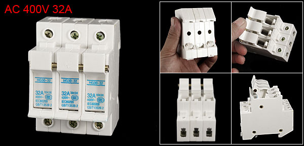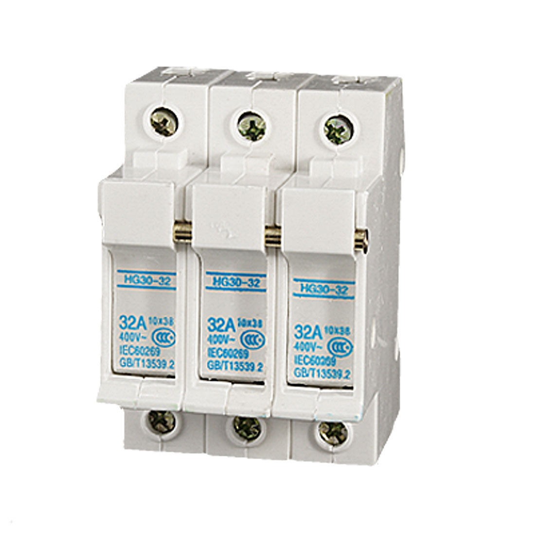 Product Name Fuse Holder Type HG30-32A/3P Fit Fuse Type 10 x 38mm / 13/32" x 1 1/2"(D*H)(Not Included Here) Rated Voltage AC 400V Rated Current 32A Poles Quantity 3 Material Hard Plastic & Metal Color See the Picture Overall Size(Approx) 7.7 x 5.3 x 6.8cm / 3" x 2" x 2.6"(L*W*H)