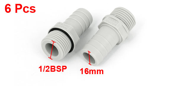 New 6pcs 1/2BSP Male Thread x 16mm Hose Barb Pipe Connector Fitting Coupler