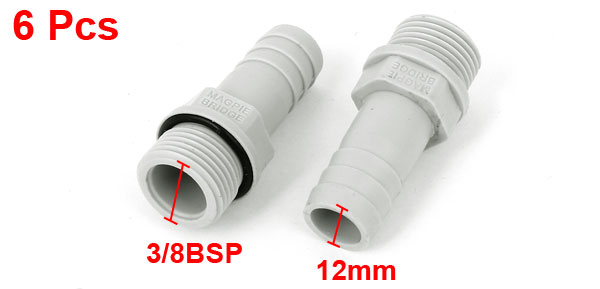 New 6pcs Pipe Fitting Coupler 3/8BSP Male Thread x 12mm Hose Barb Fuel Gas Water