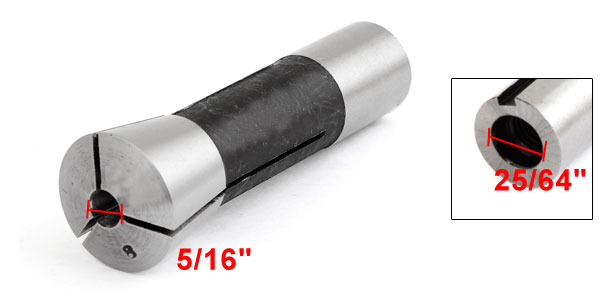 Product Name R8 Spring Collets Main Material Metal Color Black, Silver Tone Style R8 φ8 Interior Hole Diameter 8mm/ 5/16" Thread Diameter 10mm/ 25/64" Exterior Diameter Small: 24mm/ 0.94" & Big: 32mm/ 1.26" Total Height 10.2cm/ 4" Weight 321g Package Content 1 x R8 Spring Collets