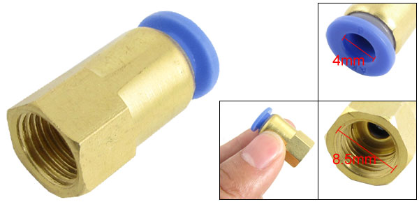 Item Name Quick Fittings Total Size 22 x 13mm(L*W) Thread Diameter 8.5mm Inner Diameter (Blue End) 4mm Material Nickel-plated Brass & Plastic Color Gold Tone, Blue Weight 9g Package Content 1 x Quick Fittings - Reviews
