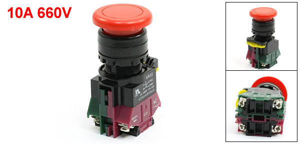 NO NC 4 Pin Red Mushroom Momentary Pushbutton Switch Ui 660V Ith 10A
