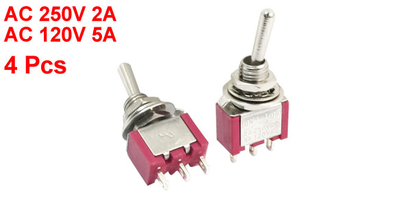 AC 120V 5AMounting Thread Diameter 5 mm / 0.2" Main Body Size 1.2 x 0.6 x 1 cm / 0.47" x 0.24" x 0.4" (L*W*H) Overall Height 3cm / 1.2" Color Red, Silver Tone Net Weight 20g Package Content 4 x Toggle Switch - Reviews
