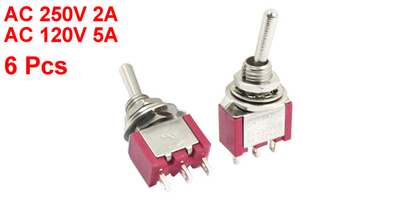 DetailsNO NC SPDT ON-ON 2 Position Locking Electric Toggle Switch AC 120V 5A Red 6pcs  Product Name Toggle Switch Type SPDT, NO NC (Latching) Position 2 Positions (ON/ON) Voltage, Current AC 250V 2A