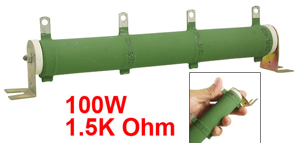DetailsNon-Flammable Fixed Type 100W 1.5K Ohm Wirewound Resistor  Product Name Wire Wound Resistor Type Fixed Type Rated Power 100W Resistance 1.5K Ohm Resistance Tolerance ±5% (J) Material Metal, Ceramic Install Size 4mm/0.157"(Hole Dia) 18 x 8mm/0.7" x 0.3"(L*W) Tube Size 24.2 x 2.8cm/ 9.5" x1.1"(L*D) Total Length 26.8cm/10.6" Color As Picture Shown Weight 250g Package Content 1 x Wire Wound Resistor