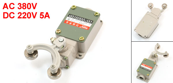 Product Name Limit Switch Model No. LX19-2/2 Contact Configuration 1NO+1NC(SPDT) Actuator Type Double Rotary Roller Lever Arm Action Type Latching Rating AC380V DC220V 5A Lever Arm Size 6 x 5cm/2.4" x 2"(L*W) Roller Wheel Size 6 x 18mm/ 0.24" x 0.71"(W*Dia.) Installing Hole Diameter 4.5mm/ 0.18"