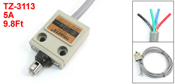 Product Name Limit Switch Model No. TZ-3113 Contact Configuration 1NO+1NC(SPDT) Actuator Type Sealed Crossroller Plunger Action Type Momentary Ith 5A AC-15 250VAC 5A DC-12 30VDC 5A Waterproof Level IP67 Roller Size 12.5 x 3.7mm/0.49" x 0.15"(D*T) Actuator Size 12.5 x 14mm/0.49" x 0.55"(D*H) Installing Hole Size 5.5mm/0.22"(Dia) Installing Hole Distance 2.5cm/1"(L*W)(Center to Center) Total Length 3Meter/9.8Ft Switch Size 6.5 x 3.8 x 1.6cm/2.6" x 1.5" x 0.63"(L*W*H) Material Plastic, Metal Main Color Gray Net Weight 340g Package Content 1 x Limit Switch - Reviews