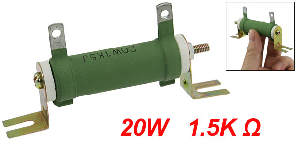 Product Name Wire Wound Resistor Type Fixed Type Rated Power 20W Resistance 1.5K Ohm Resistance Tolerance ±5% (J) Material Metal, Ceramic Screw Thread Dia 4mm/0.16" Hole Dia 3mm/0.12" Hole Distance(Center to Center) 4.4cm/1.7" Tube Size 6 x 1.6cm/2.3" x 0.6"(L*D) Total Length 9.2cm/3.6" Color As Picture Shown Weight 34g Package Content 1 x Wire Wound Resistor - Reviews