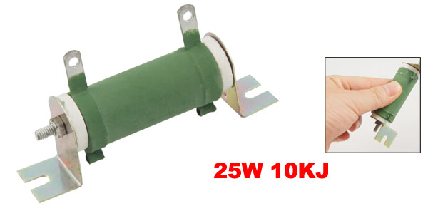 Product Name Wire Wound Resistor Type Fixed Type Rated Power 25W Resistance 10K Ohm Resistance Tolerance ±5% (J) Material Metal, Ceramic Screw Thread Dia 4mm/0.16" Hole Dia 3mm/0.12" Hole Distance(Center to Center) 4.4cm/1.7" Tube Size 5 x 2cm/ 2" x 0.79"(L*D) Total Length 9.2cm/3.6" Color As Picture Shown Weight 44g Package Content 1 x Wire Wound Resistor - Reviews