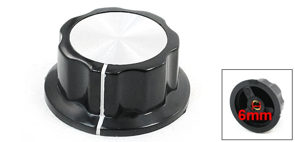 Product Name Rotary Knob Material Plastic, Metal Color Black, Silver Tone Fit for Shaft Hole Dia. 6mm/ 0.236" Knob Top Diameter 36mm/1.4" Overall Size 45 x 20mm/ 1.8" x 0.78"(D*H) Weight 20g Package Included 1 x Potentiometer Rotary Knobs - Reviews