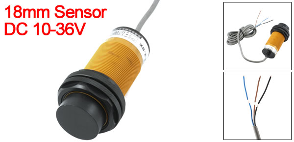 DetailsNPN 18mm Detection Distance Inductive Sensor Proximity Switch LJ38A4-18-Z/BX  Product Name Proximity Switch Model LJ38A4-18-Z/BX Theory Inductive Sensor Wire Type 3 Wire Type (Brown, Blue, Black) Switch Appearance Type Cylinder Type, Plastic Shell Output Type NPN, NO(Normal Open) Sensor Distance 18mm Sensor Supply Voltage DC 10-36V Output Current(Max) 200 mA Detect Object Iron Column Sensor Diameter 35mm/1.4" Thread Diameter 38mm/1.5" Total Size 95 x 38mm/ 3.7" x 1.5" (L*D) Cable Length 1m/3.3ft External Material Plastic Color Yellow, Black Net Weight 180g Package Content 1 x Proximity Switch