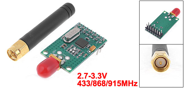 NRF905 433/868/915MHz Wireless Module w Antenna 2.7-3.3V Green