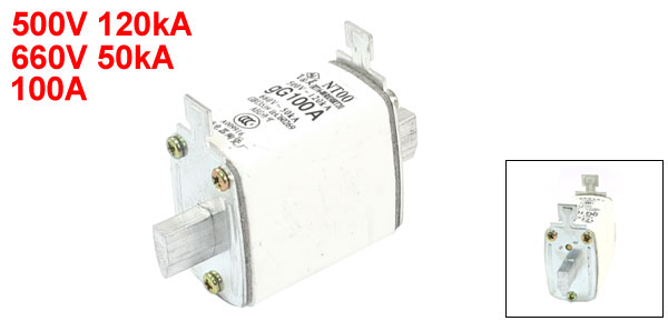 Product Name Fuse Link Model NT00 gG 100A Rated Breaking Capacity 500V, 120kA 660V, 50kA Rated Current 100A Body Size 5 x 4 x 2.5cm/ 2" x 1.6" x 1" (L*W*H) Total Length 12.5cm/ 4.9" External Material Ceramic, Metal Color White & Silver Tone Weight 143g Package Content 1 x Fuse Link - Reviews