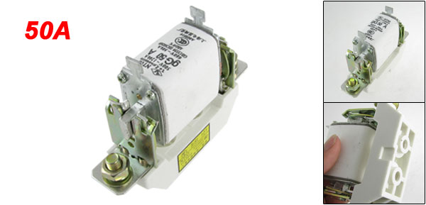 NT00 gG 50A Ceramic Fuse Link 500V 120kA 660V 50kA w Plastic Base