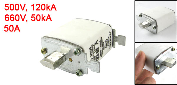 Product Name Fuse Link Model NT00 gG 50A Rated Breaking Capacity 500V, 120kA 660V, 50kA Rated Current 50A Overall Size 4.8 x 4.2 x 2.7cm / 2.2" x 1.1" x 3"(L*W*H) Total Length 7.2cm/ External Material Ceramic, Metal Color White & Silver Tone Weight 156g Package Content 1 x Fuse Link - Reviews