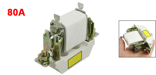 Product Name Fuse Link w Base Model NT00, gG 80A Rated Breaking Capacity 500V, 120kA 660V, 50kA Rated Current 80A Thread Dia. 0.7cm/0.28'' Overall Size 11.7 x 3 x 8.5cm/4.6'' x 1.2'' x 3.3'' (L*W*H) External Material Ceramic, Metal, Plastic Color White & Silver Tone Weight 306g Package Content 1 x Fuse Link w Base - Reviews