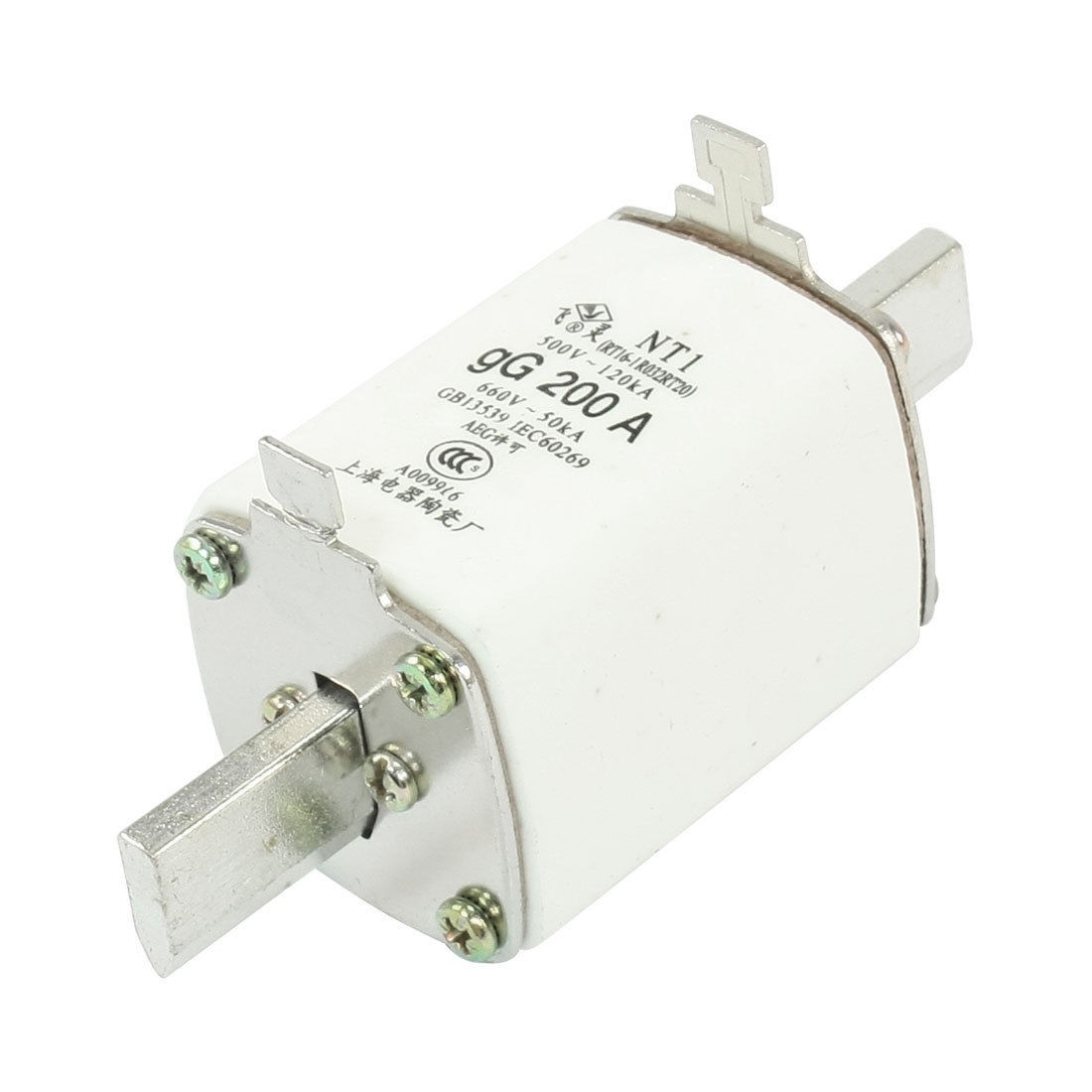 Product Name Fuse Link Model NT1 gG 200A Rated Breaking Capacity 500V, 120kA 660V, 50kA Rated Current 200A Body Size 7 x 4.5 x 4.5cm/ 2.76" x 1.77" x 1.77" (L*W*H) Total Length 12.5cm/ 4.9" External Material Ceramic, Metal Color White & Silver Tone Weight 369g Package Content 1 x Fuse Link - Reviews