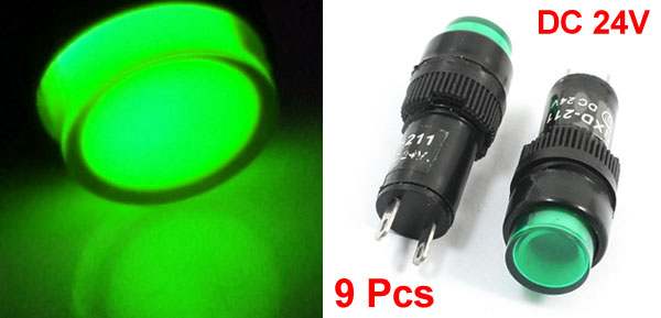 NXD-211 DC 24V 9mm Dia Mounting Green LED Signal Lamp Pilot Light 9pcs