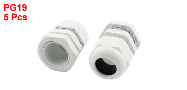 Product Name Cable Gland Model PG19 Cable Range 12-15mm / 0.47"-0.6" Thread O.D. 22mm Total Size 40 x 30mm / 1.6" x 1.2" (L*D) Main Material Nylon, Rubber Color White Weight 75g Package Content 5 x Cable Gland - Reviews