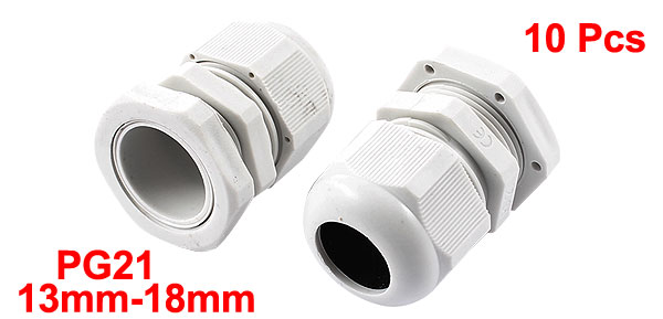 Product Name Cable Gland Model PG21 Cable Dia 13-18mm / 0.5"-0.7" Thread O.D. 27mm/1.1" Total Size 47 x 39mm / 1.9" x 1.5" (H*Dia) Material Plastic Color Off White Weight 198g Package Content 10 x Cable Glands - Reviews
