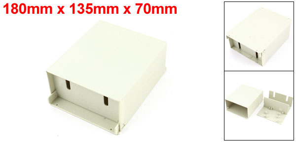 Product Name Outdoor Junction Box Mounted Type Surface Mounted Total Size 180 x 135 x 70mm/7.1" x 5.3" x 2.8"(L*W*H) Internal Size 155 x132 x 70mm/ 6.1" x 5.2" x 2.8"(L*W*H) Material Plastic Color Off White Weight 277g Package 1 x Outdoor Junction Box - Reviews