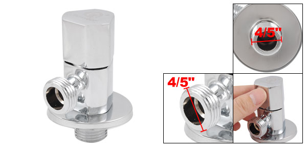 Product Name Angle Stop Valve Design Triangle Material Chrome Finish, Solid Brass Male Thread Diameter 20.5 x 20.5mm / 4/5" x 4/5" Overall Size (Approx.) 7.5 x 3 x 4.5cm / 3" x 1.2" x 1.8" (L*W*H) Color Silver Tone Weight 161g Package Content 1 x Angle Stop Valve 1 x Round Disc - Reviews