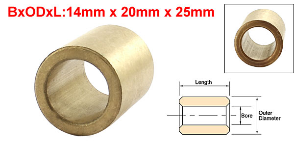 Oil Impregnated Sintered Bronze Bushing 14mm Bore x 20mm OD x 25mm Long