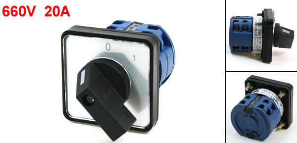 Product Name Changeover Switch Model No. LW28-20/2.C04 Ui 660V Ith 20A Ue/Le 440V 240V Contact Type ON-OFF Position Number 2 Terminal Number 8 Installing Holes Dia(Approx) 0.35cm / 0.14" Installing Holes Center Distance(Approx) 3.8 x 3.8cm/1.5" x 1.5"(L*W) Overall Size(Approx) 5 x 5 x7cm/2" x 2" x 2.8"(L*W*H) External Material Plastic, Metal Color Blue, Black Net Weight 102g Package Content 1 x Changeover Switch - Reviews