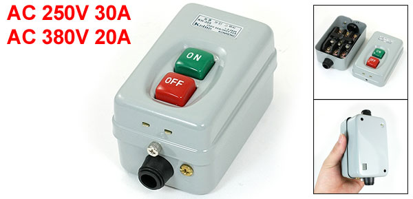 Product Name Power Push Button Switch Model KH-305 Type Self Locking ON/OFF, 3P Voltage & Current AC 250V 30A AC 380V 20A Total Size (Approx.) 10 x 5.7 x 5.1cm / 3.9" x 2.2" x 2" (L*W*H) Color Gray External Material Metal Net Weight 316g Package Content 1 x Power Push Button Switch - Reviews