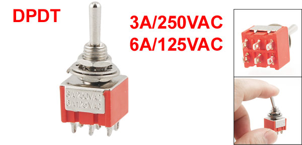Product Name Toggle Switch Type DPDT (ON/Off/ON) Position 3 Mounting Hole Diamter 5.8mm / 0.228" Voltage & Current 3A/250VAC