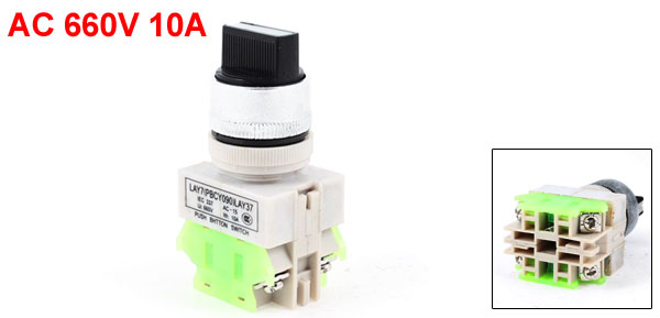 Product Name Push Button Switch Material Plastic, Metal Type Rotary Selector Switch, DPST Positions 3 Ith 10A Ui 660V Terminal Number 4 Mounting Hole Diameter 2.2cm / 0.87"(7/8") Fit Panel Thickness(Adjustable) 0.5cm / 0.2" Button Diameter (Approx.) 2.4cm / 0.9" Total Size (Approx.) 7.5 x 3.6 x 3cm / 2.9" x 1.4" x 1.2" (L*W*T) Button Color Black,White,Yellow Net Weight 25g Package Content 1 x Push Button Switch - Reviews