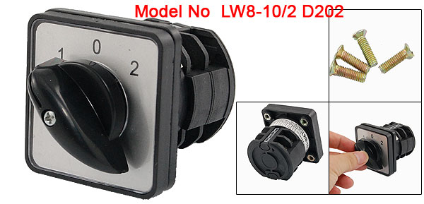Product Name Universal Switch Model No. LW8-10/2 D202 Voltage AC 440V Ith AC 10A Mounted Hole Dia 3mm/ 0.11" Bottom Size 4.3 x 3.6cm/ 1.7" x 1.4"(L*W) Overall Size 5 x 5 x 6.5cm / 2" x 2" x 2.5" (L*W*H) External Material Plastic Color As Picture Shown Net Weight 82g Package Content 1 x Universal Switch 4 x Installing Screw - Reviews