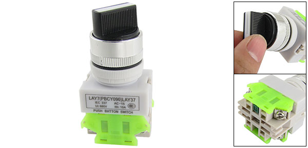 Product Name Push Button Switch Material Plastic, Metal Type Rotary Selector Switch Positions 3 Ith 10A Ui 660V Terminal Number 4 Mounting Hole Diameter 2.2cm / 0.87"(7/8") Fit Panel Thickness 0.5cm / 0.2" Button Diameter (Approx.) 2.3cm / 0.9" Total Size (Approx.) 3.6 x 3 x 7.5cm / 1.4" x 1.2" x 3"(L*W*H) Button Color Black Weight 39g Package Content 1 x Push Button Switch - Reviews