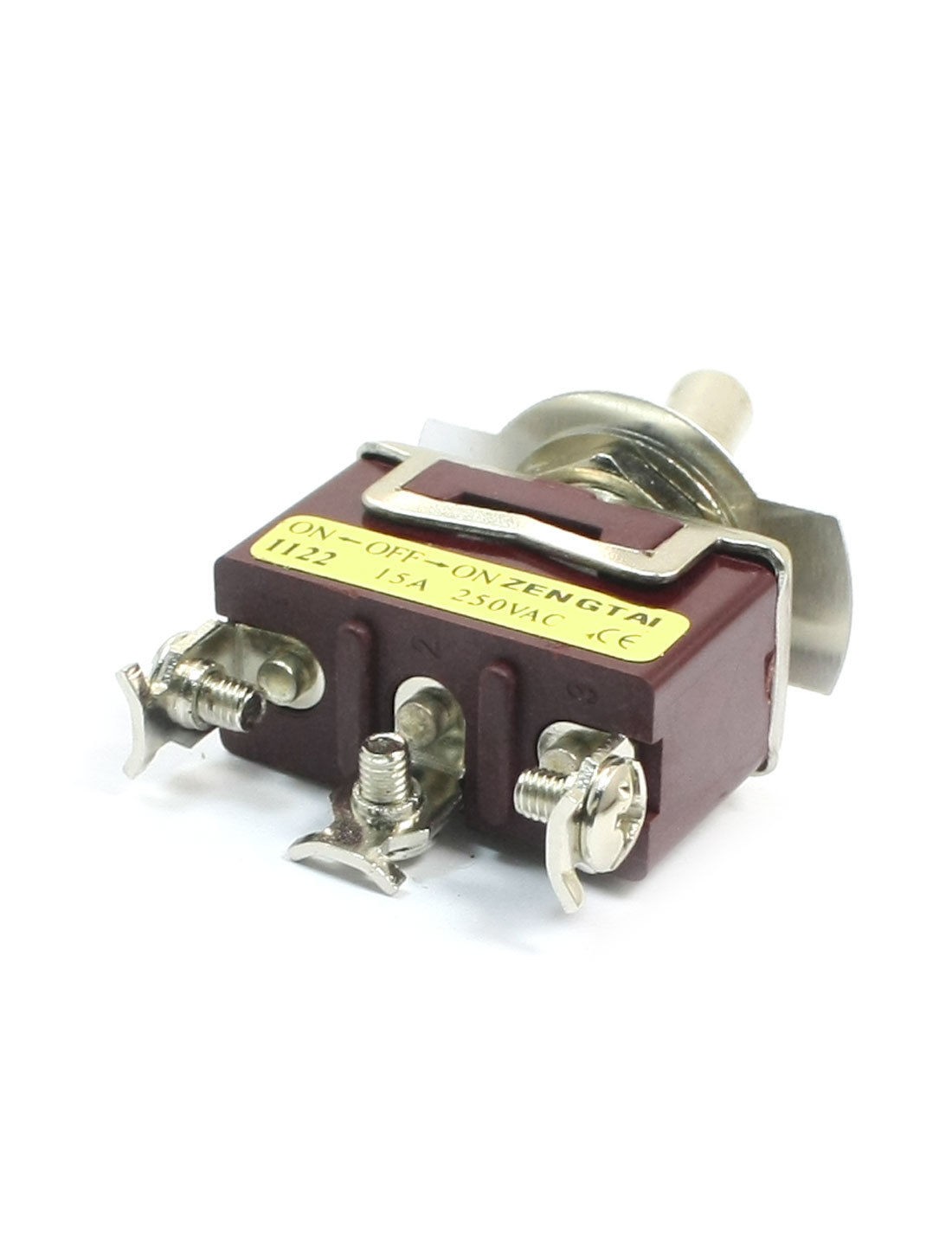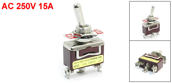 Product Name Toggle Switch Model E-TEN1122 Type SPDT (Latching) Position 3 Positions (ON/OFF/ON) Voltage, Current AC 250V 15A Mounting Thread Diameter 11 mm / 0.43" Main Body Size 2.8 x 1.3 x 1.8 cm / 1.1" x 0.5" x 0.7" (L*W*H) Overall Height 5.5cm / 2.2" Net Weight 27g Package Content 1 x Toggle Switch - Reviews